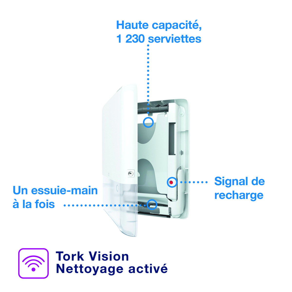 • Flexibilité accrue pour le rechargement d'essuie-mains.