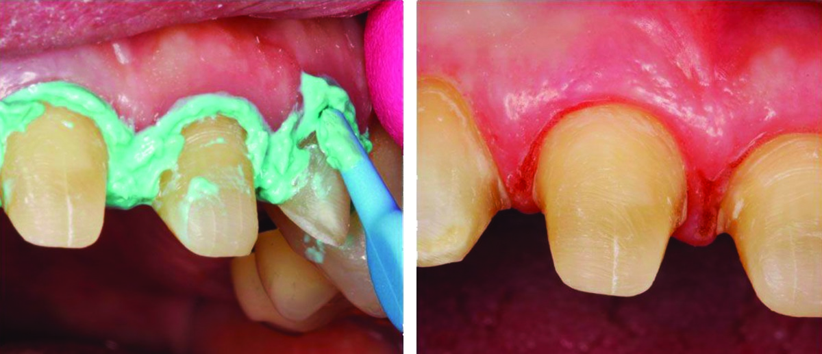 • La légère fermeté de la pâte permet un meilleur déplacement des tissus lorsque le matériau est poussé au niveau du sulcus (avec une coiffe de compression ou un rouleau de coton)