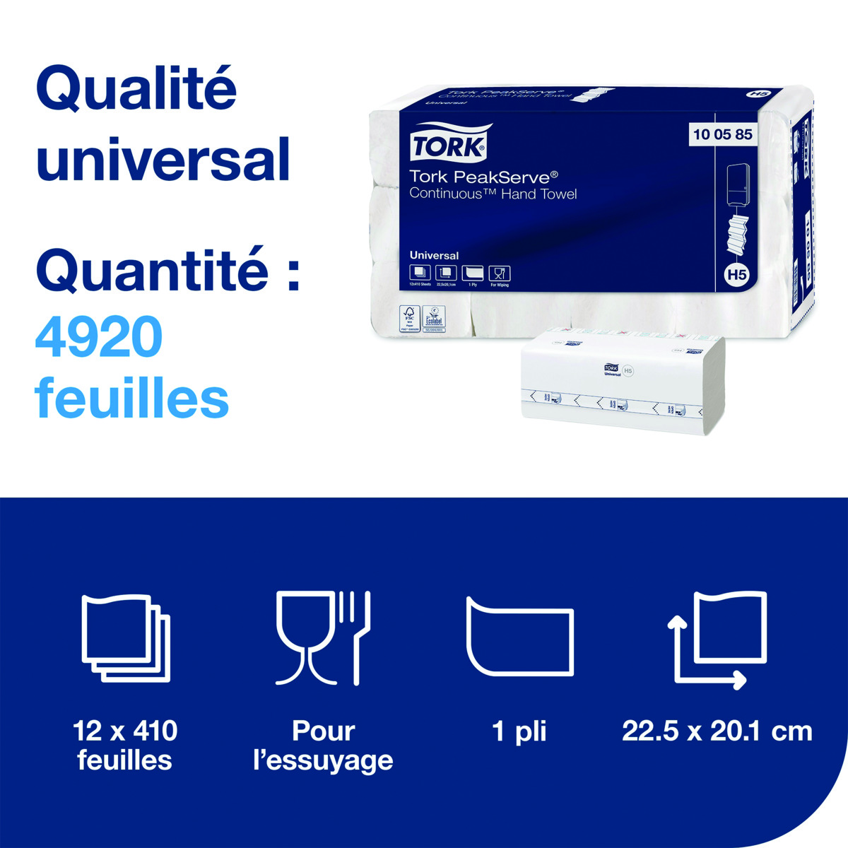Essuie-mains continus PeakServe H5 - Boîte de 12x410 - TORK