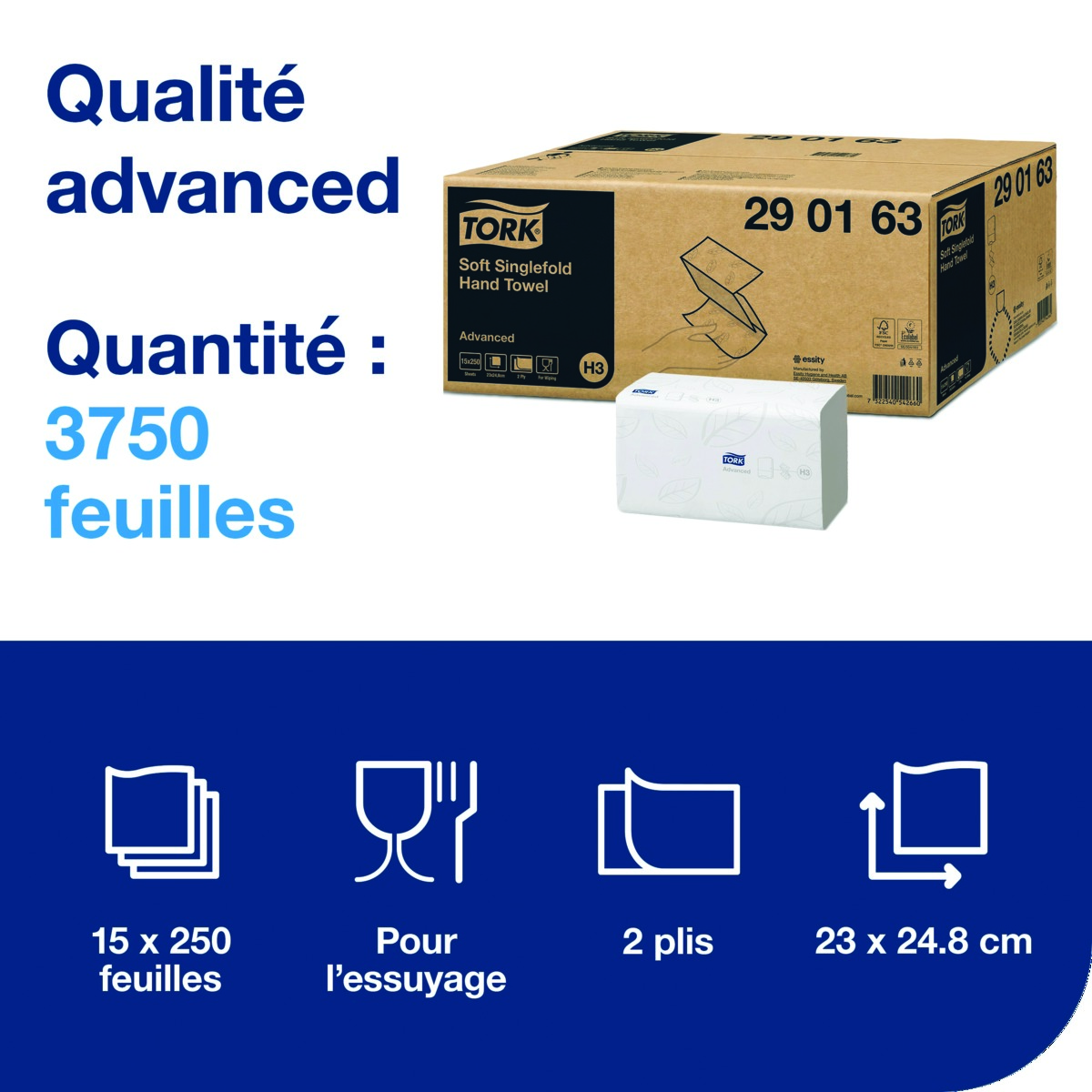 Essuie-mains pliés en Z TORK - Le carton de 15 paquets (3750) - Blanc