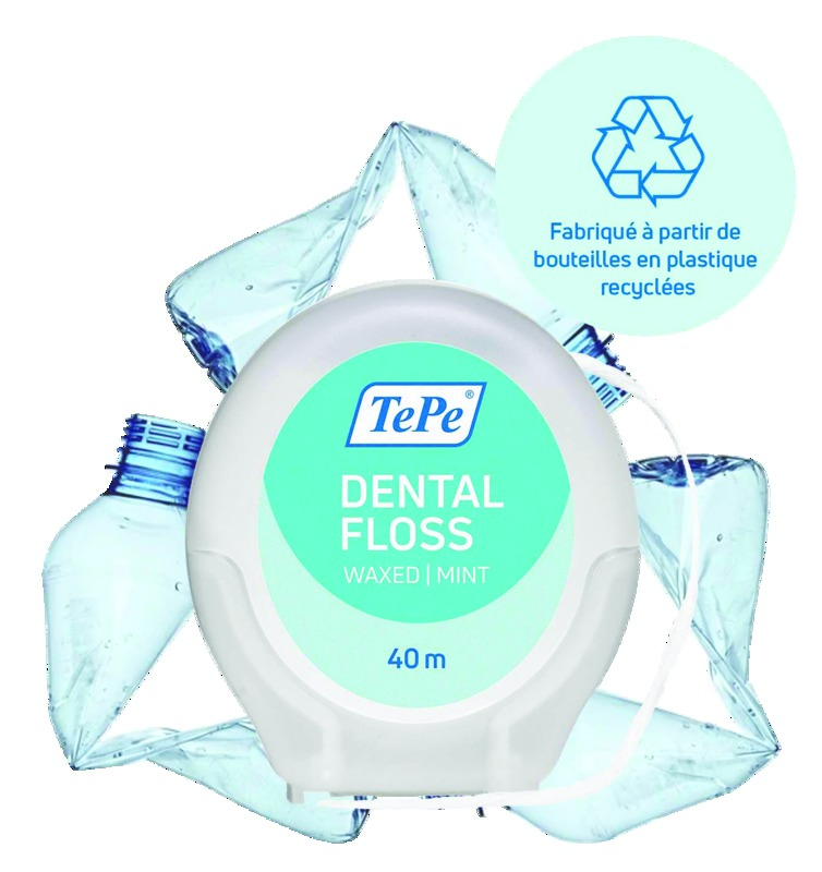 Fil dentaire à expansion – 40 m – TePe Pure – Menthe – Fil recouvert de cire végétale