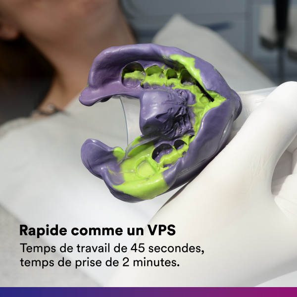 - - Polyéther ultrarapide grâce à un temps de travail de 45 secondes et un temps de prise de 2 minutes,