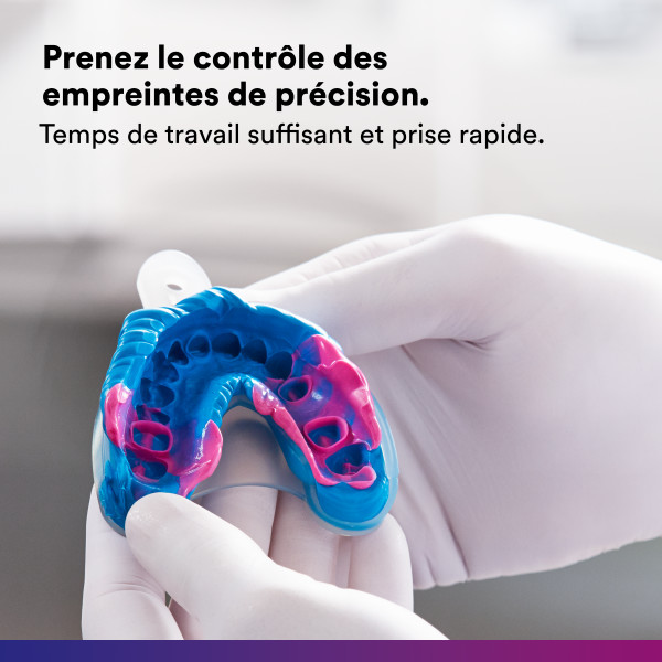 Le matériau d'empreinte VPS 3M™ Imprint™ 4 est disponible avec un temps de durcissement intra-oral standard et rapide, pour vous permettre de choisir le matériau adapté à votre empreinte. Ainsi, vous contrôlez davantage les opérations de prise d'empreintes dentaires de qualité essentielles à l'ajustement précis de vos restaurations, tout en réduisant le stress pour vous et vos patients.