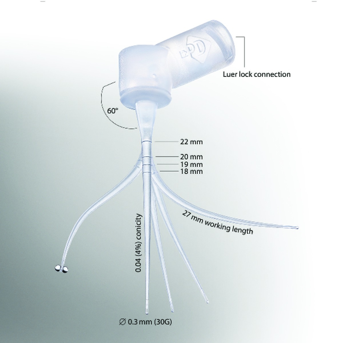Aiguilles flexibles stériles conçues pour irriguer les canaux radiculaires de manière plus sûre et efficace, même dans les zones courbées. Corps en polypropylène, deux ouvertures latérales pour une diffusion dirigée du liquide sur les parois dentinaires.