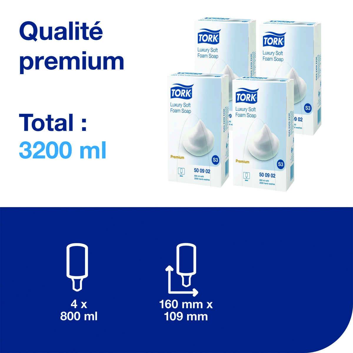 Savons mousse TORK PREMIUM - Le lot de 4 recharges de 0,8 litres