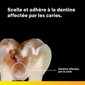 - - Scelle et adhère à la dentine affectée par les caries pour soutenir la dentisterie mini-invasive.
