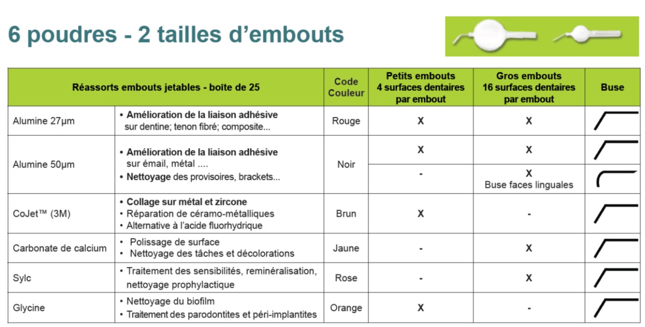 SD Etch’Air utilise des embouts pré-remplis d’abrasif ou de poudre prophylactique qui résolvent les problèmes des sableurs et aéropolisseurs classiques. Ces embouts se fixent rapidement sur trois types de sableuses ne nécessitant aucune installation particulière.