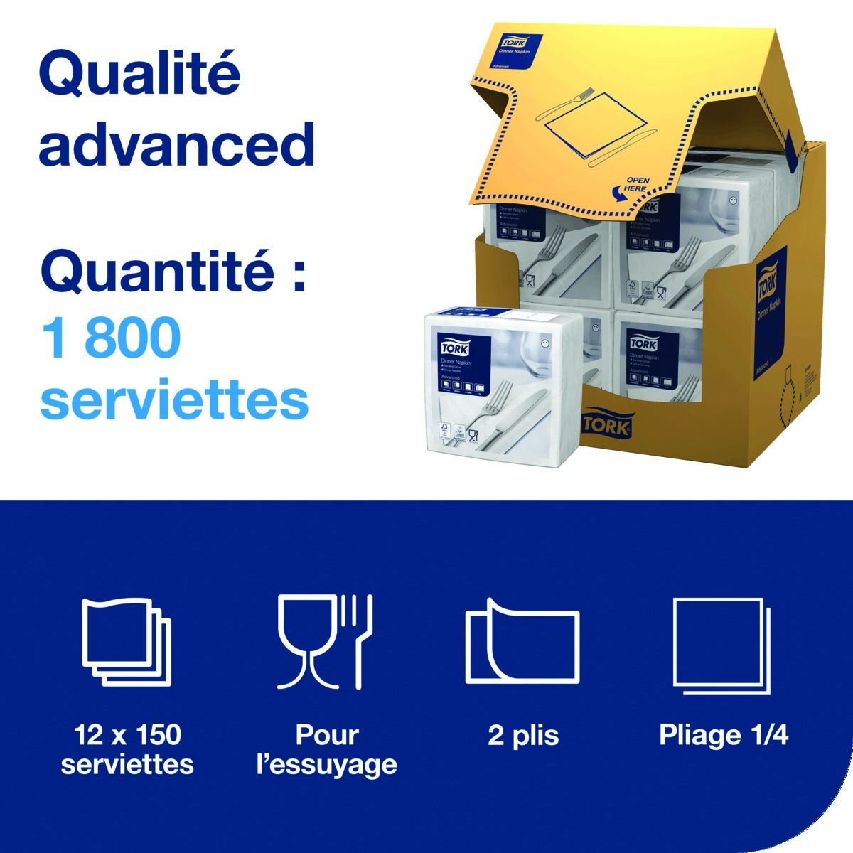 Serviettes TORK - 39x39 - Blanches 2 Plis - Lot de 150