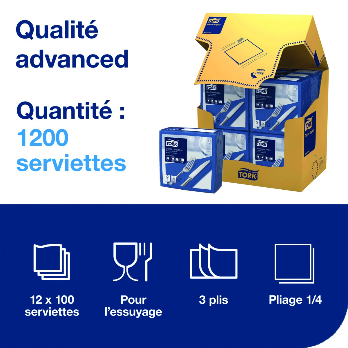 Les serviettes Dinner 3 plis Tork sont idéales pour la restauration de tous les jours. Offrez à vos clients une expérience exceptionnelle avec les serviettes 3 plis grande taille disponibles dans un large éventail de coloris modernes et classiques faciles à assortir à la décoration de votre restaurant.
