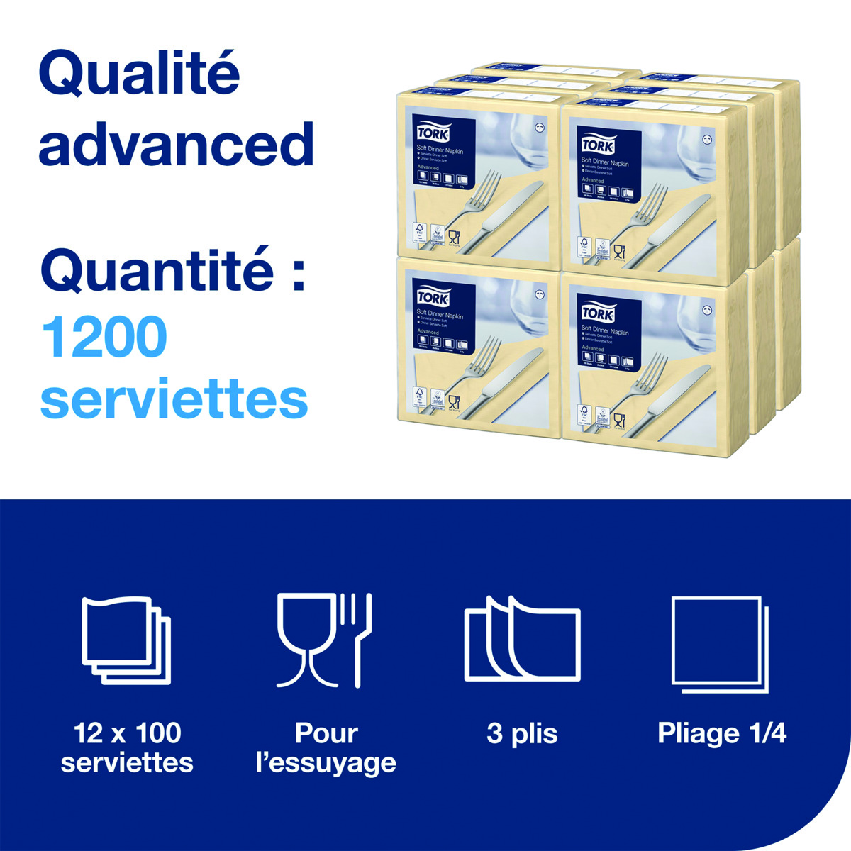 Serviettes TORK - 39x39 - Ivoire 3 Plis - Lot de 100