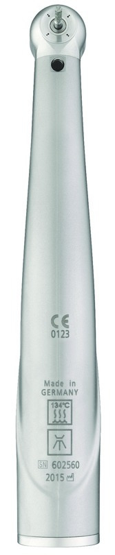 Turbine en titane massif avec roulements céramique, quadruple spray et éclairage fibre optique. Elle intègre une valve anti-retour, une fonction arrêt rapide et un bouton poussoir. Thermodésinfectable et stérilisable à 135°C.